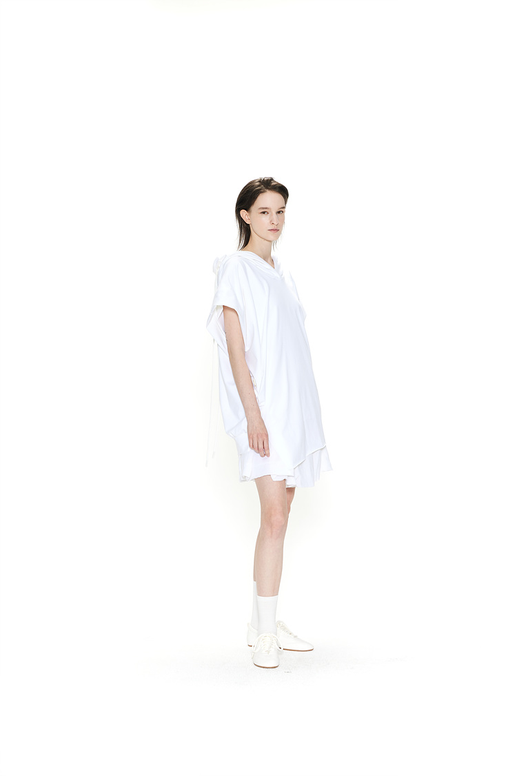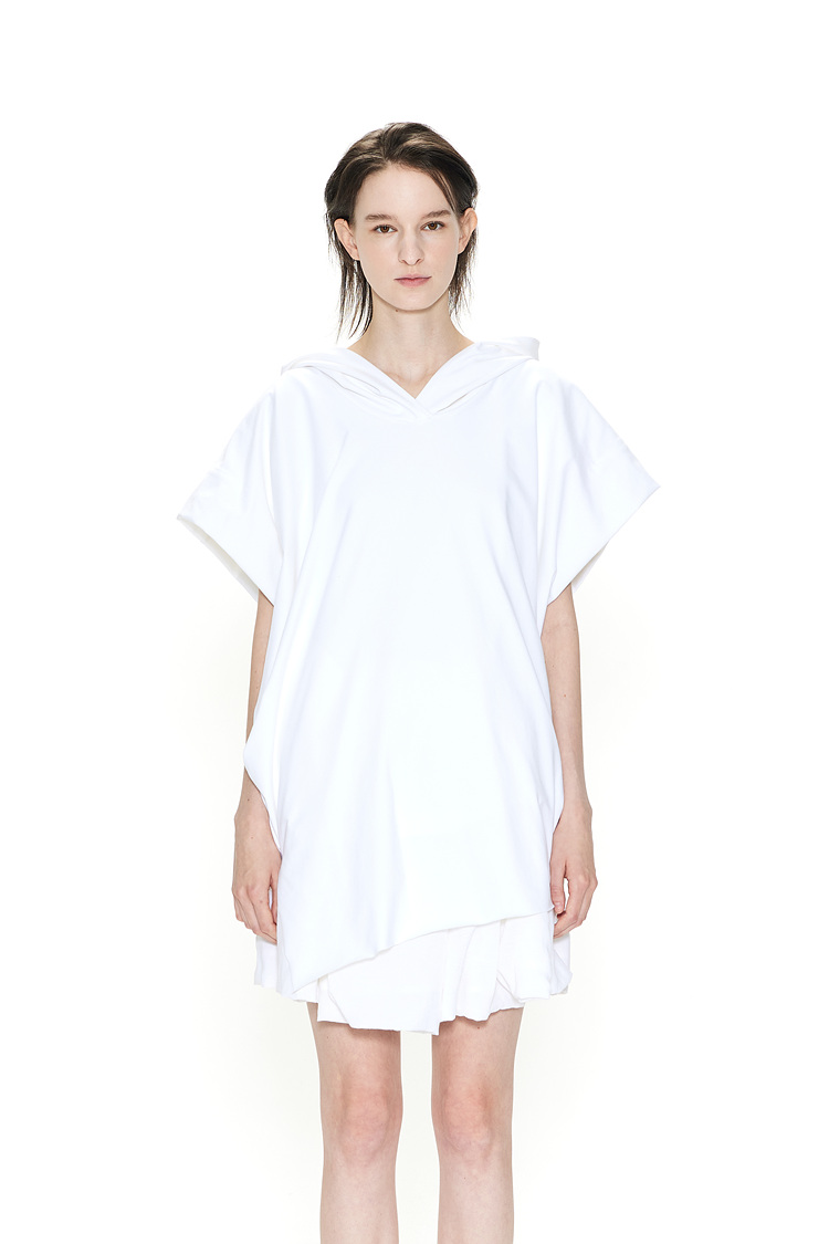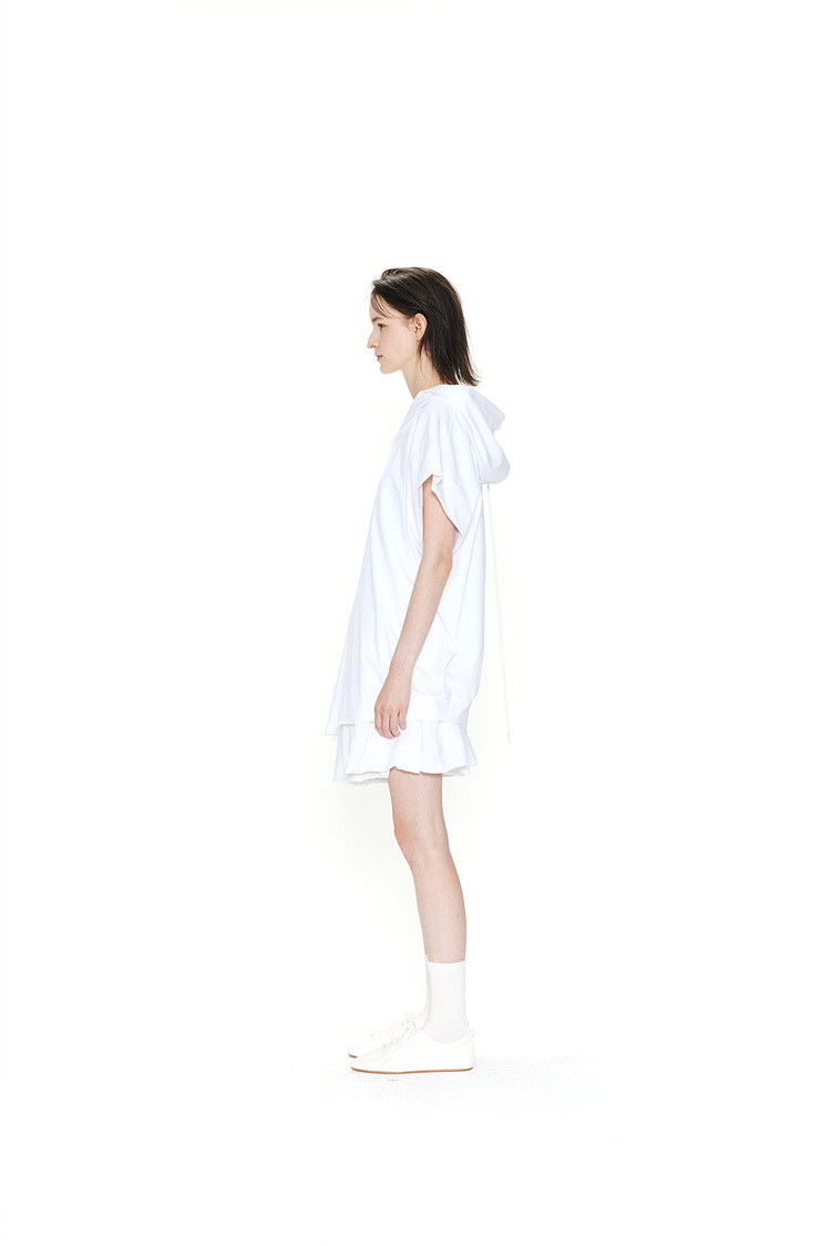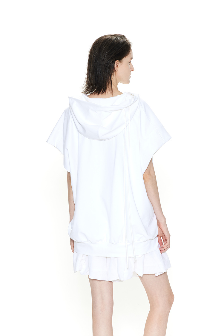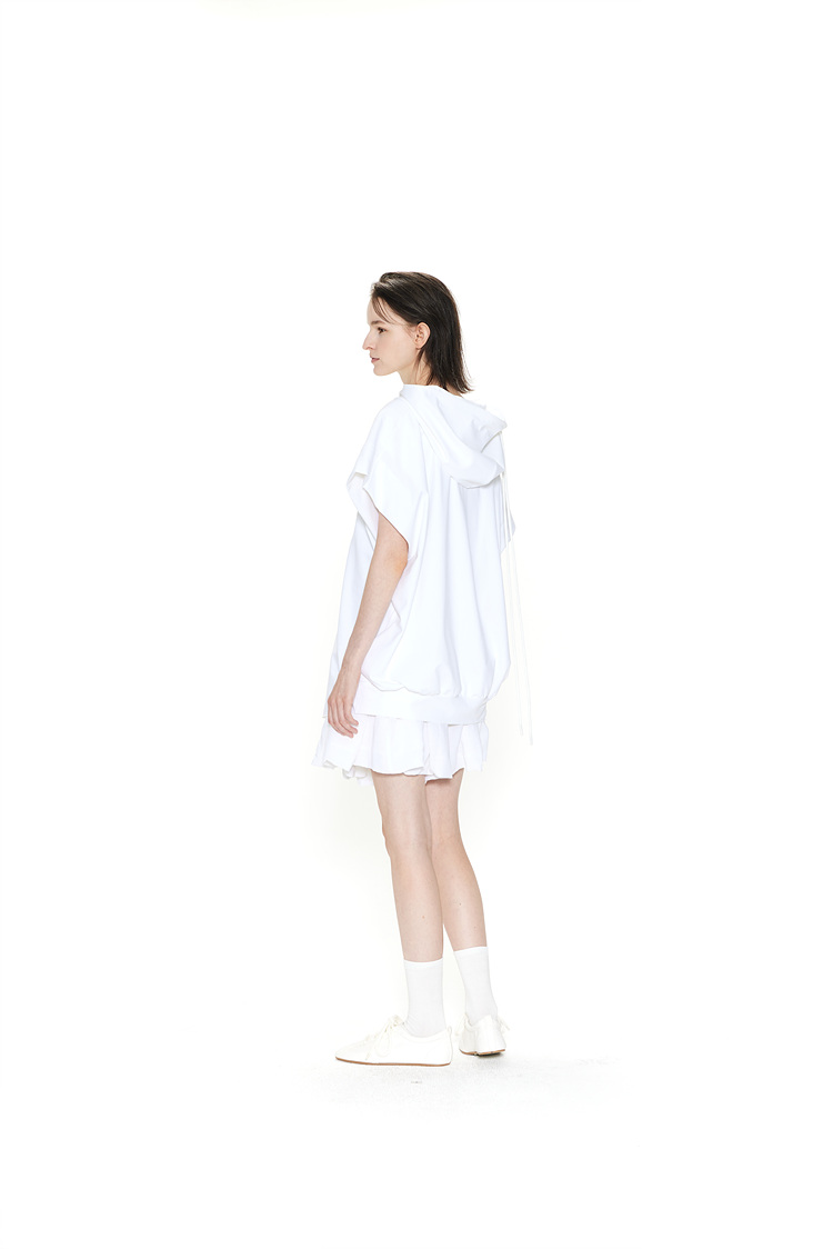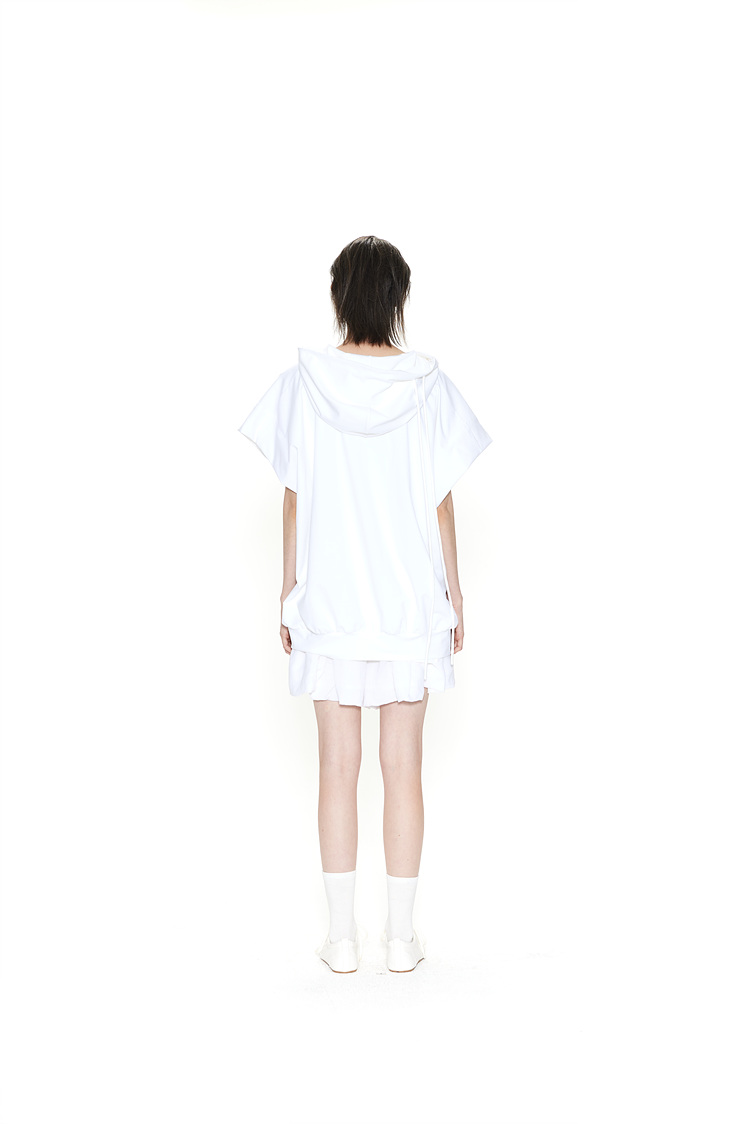 [REFURB] GDeL_RECYCLED FABRIC SLEEVELESS HOODED TOP_WHITE