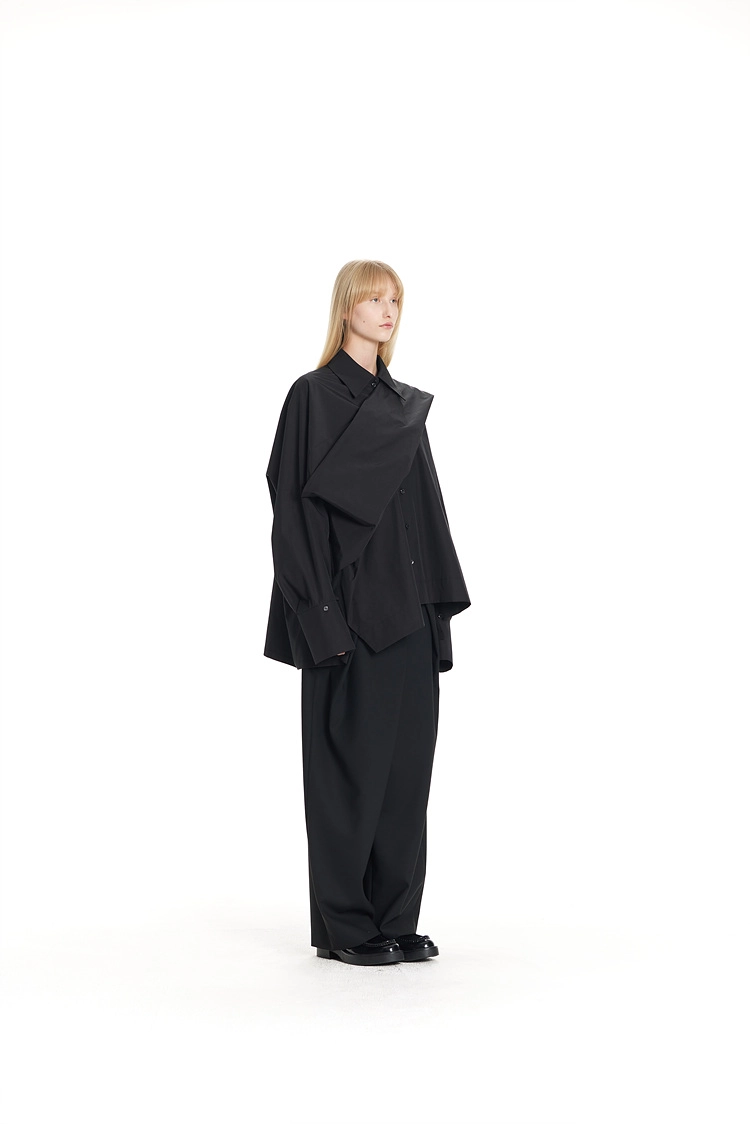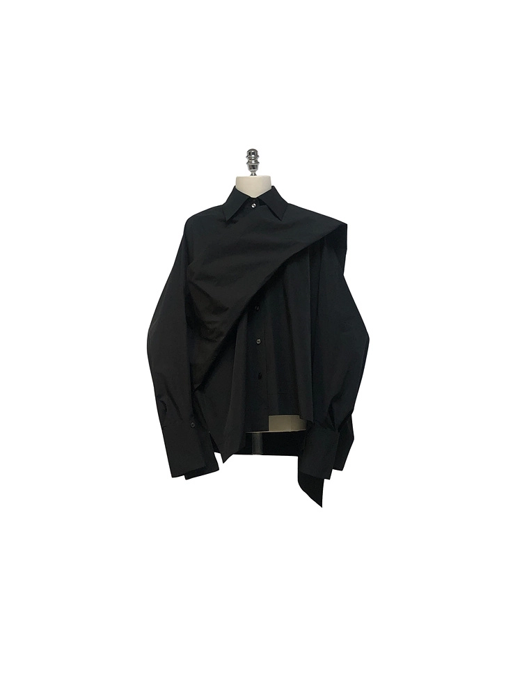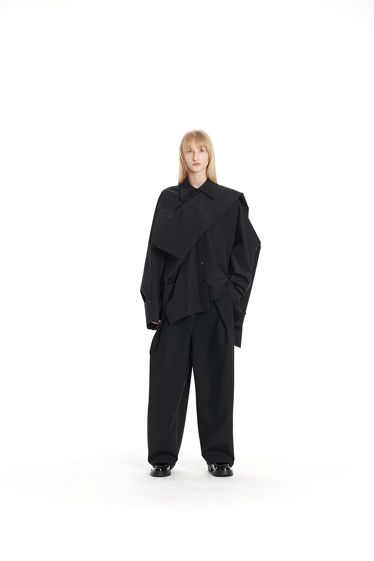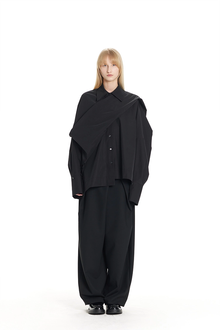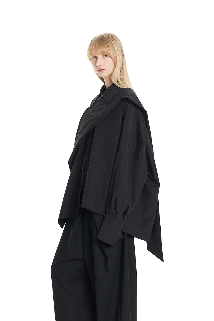 GDeL_SCARF-MATCHED RE-POLY WIDE SHIRT_BLACK