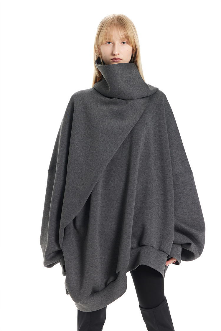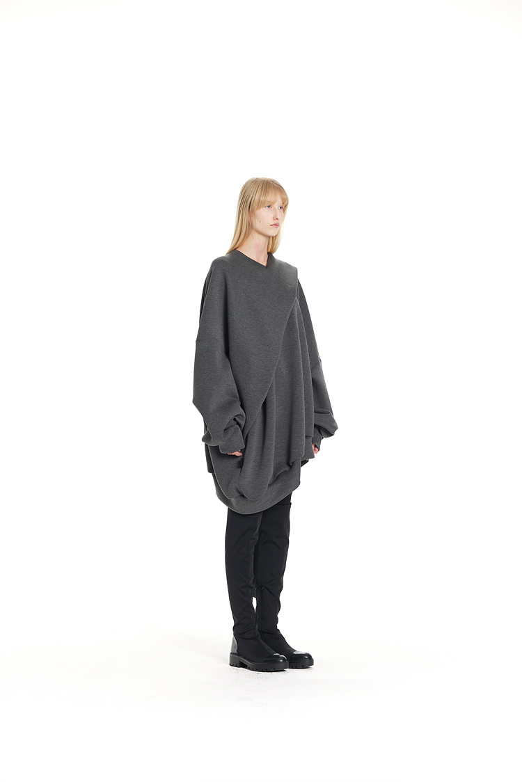 GDeL_SCARF-MATCHED ULTRA WIDE SWEAT TOP_D.GREY