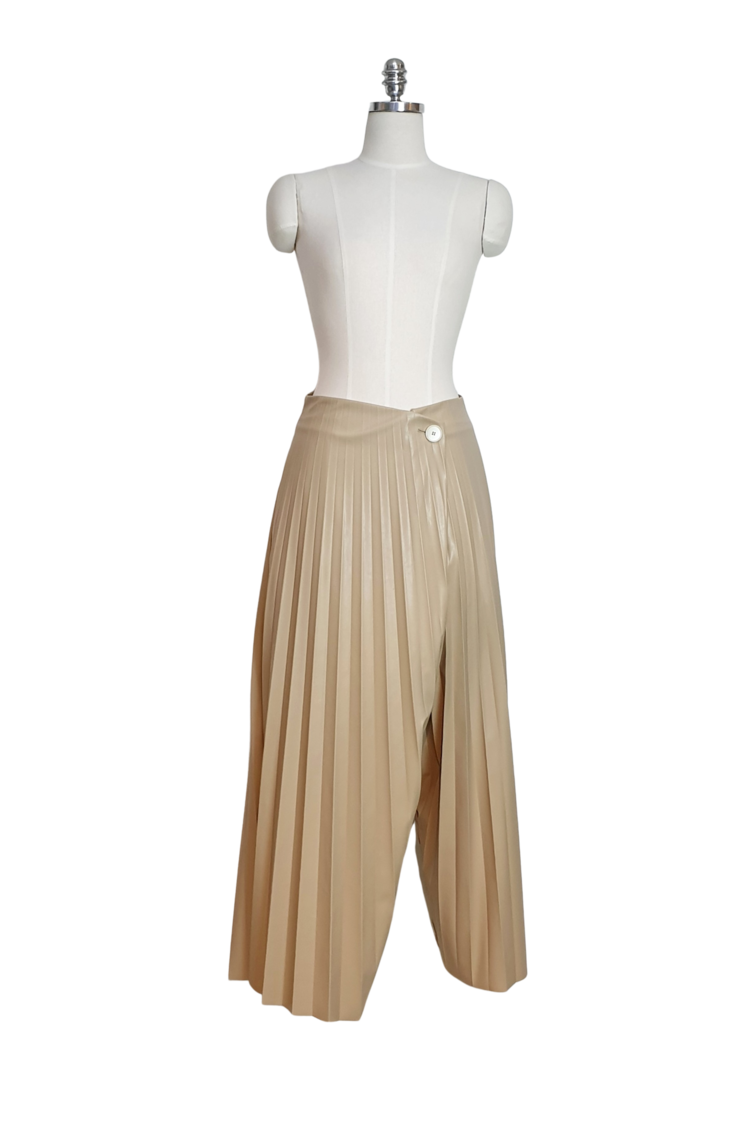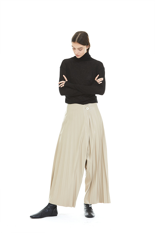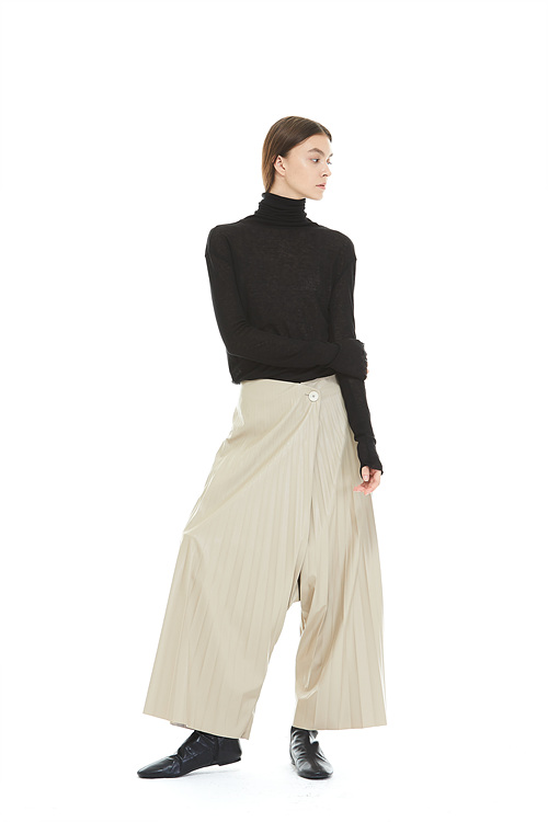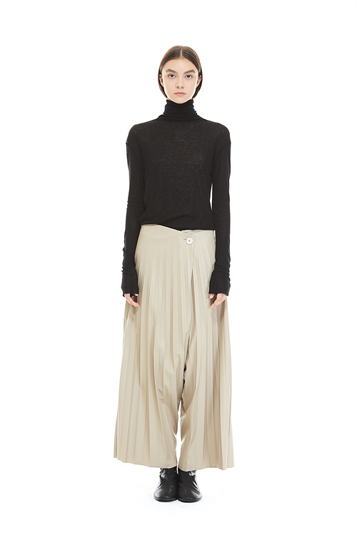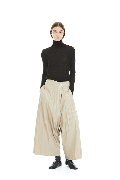 FAKE LEATHER PLEATS PANTS_BEIGE 복제