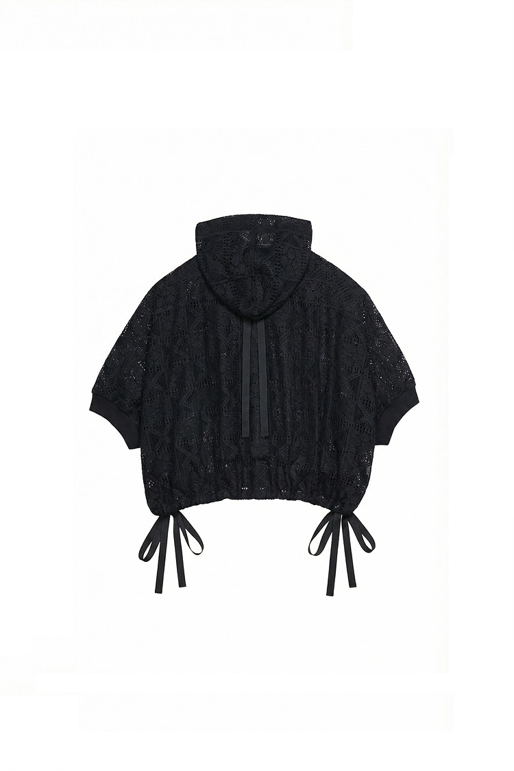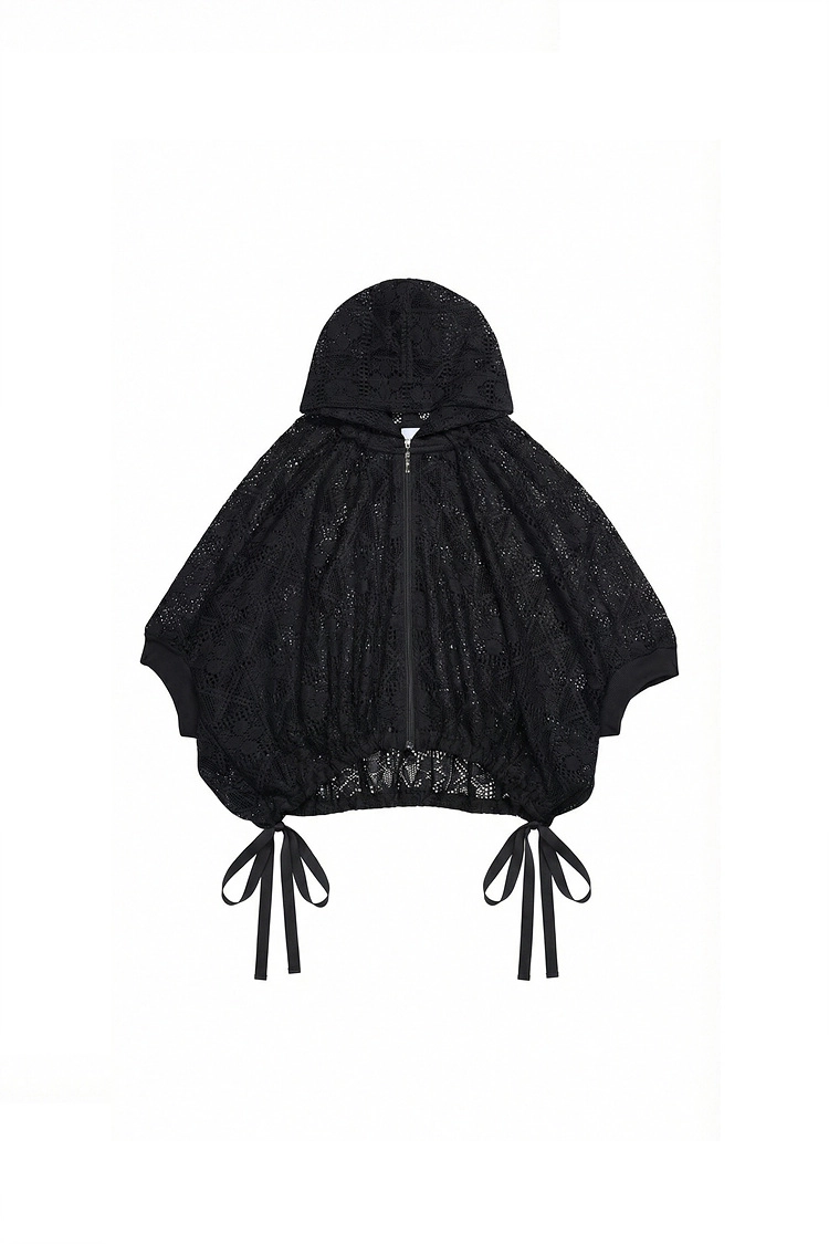 GDeL_A DIAMOND PATTERN LACE HOODED CARDIGAN_BLACK