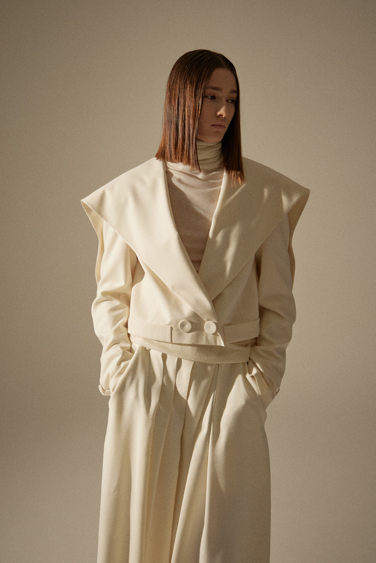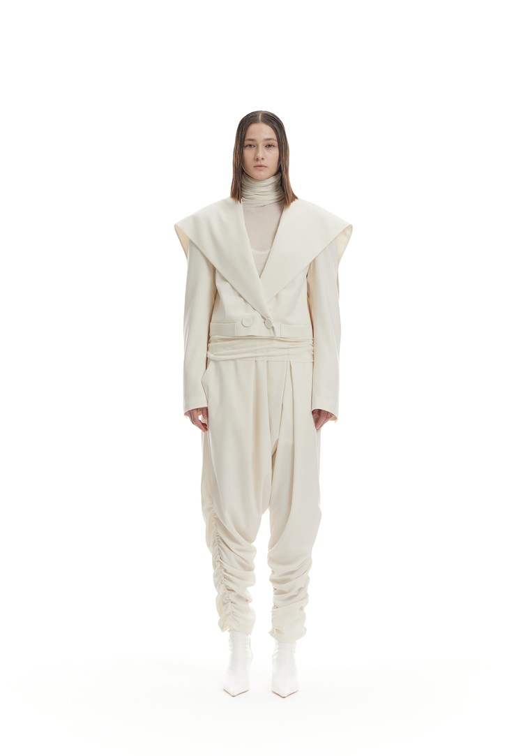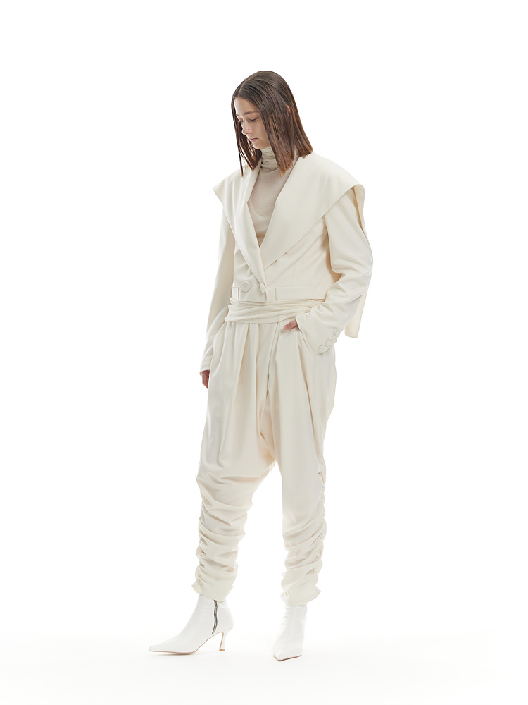 [SAMPLE] BIG SAILOR COLLAR JACKET & SHIRRING BAGGY PANTS_CREAM​