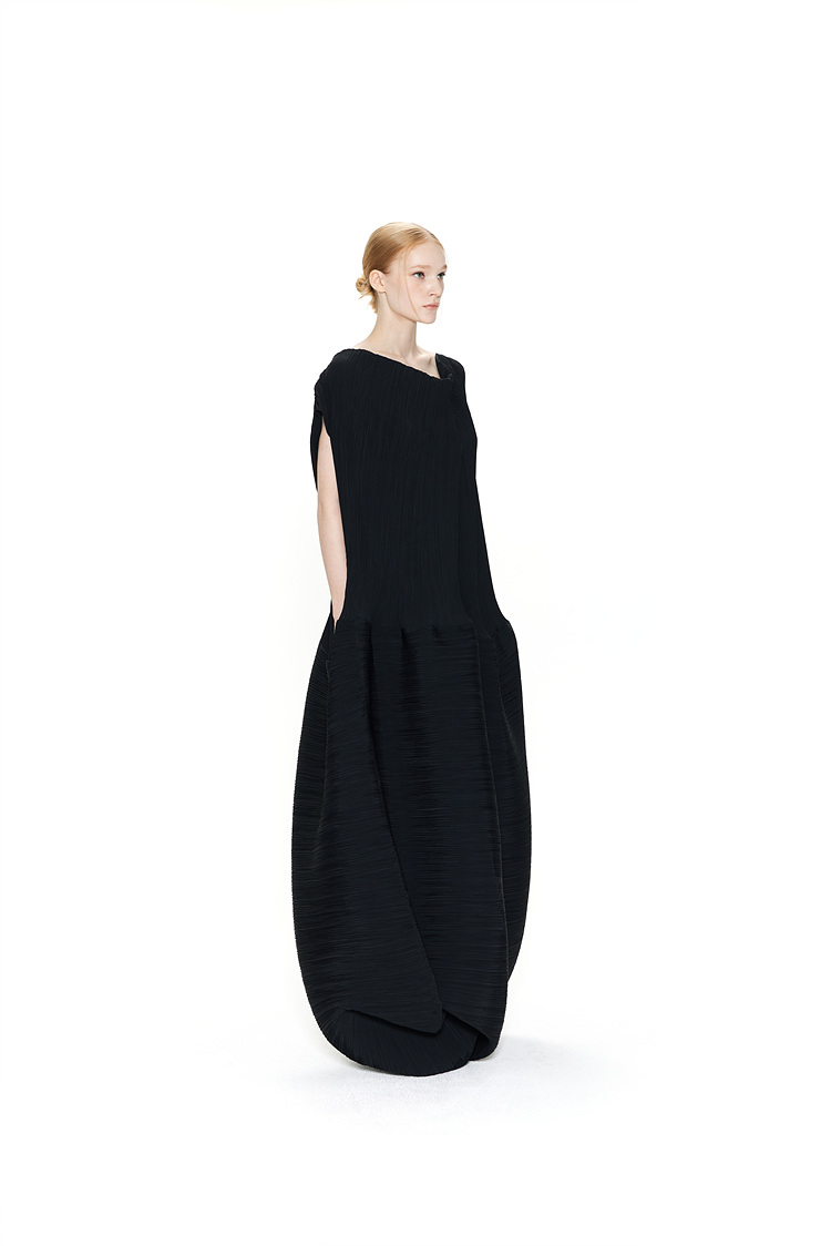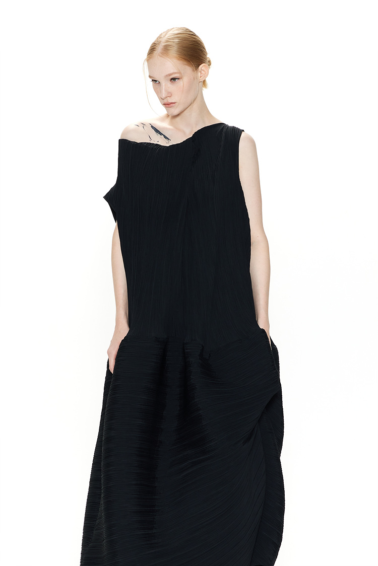 A PLEATED FABRIC WAVE VOLUME DRESS