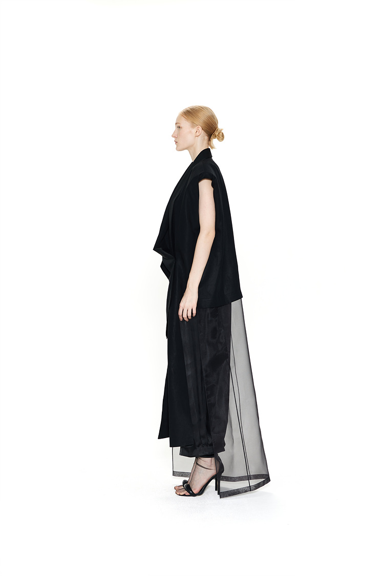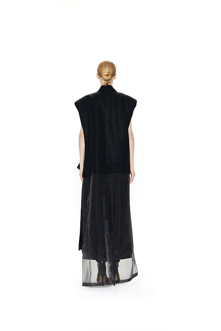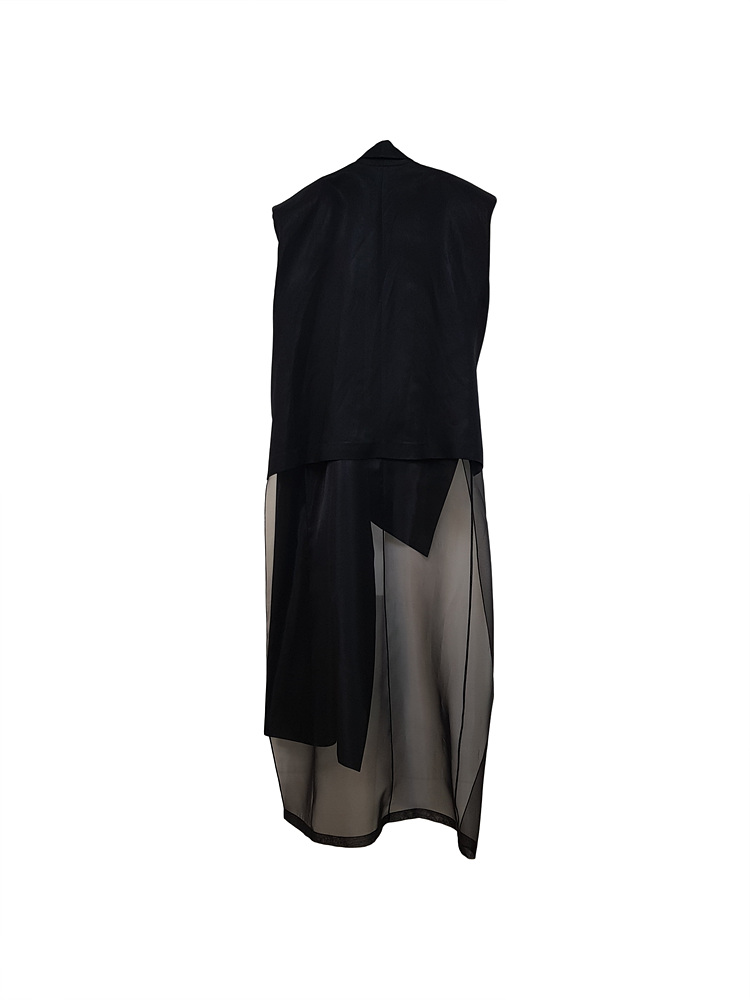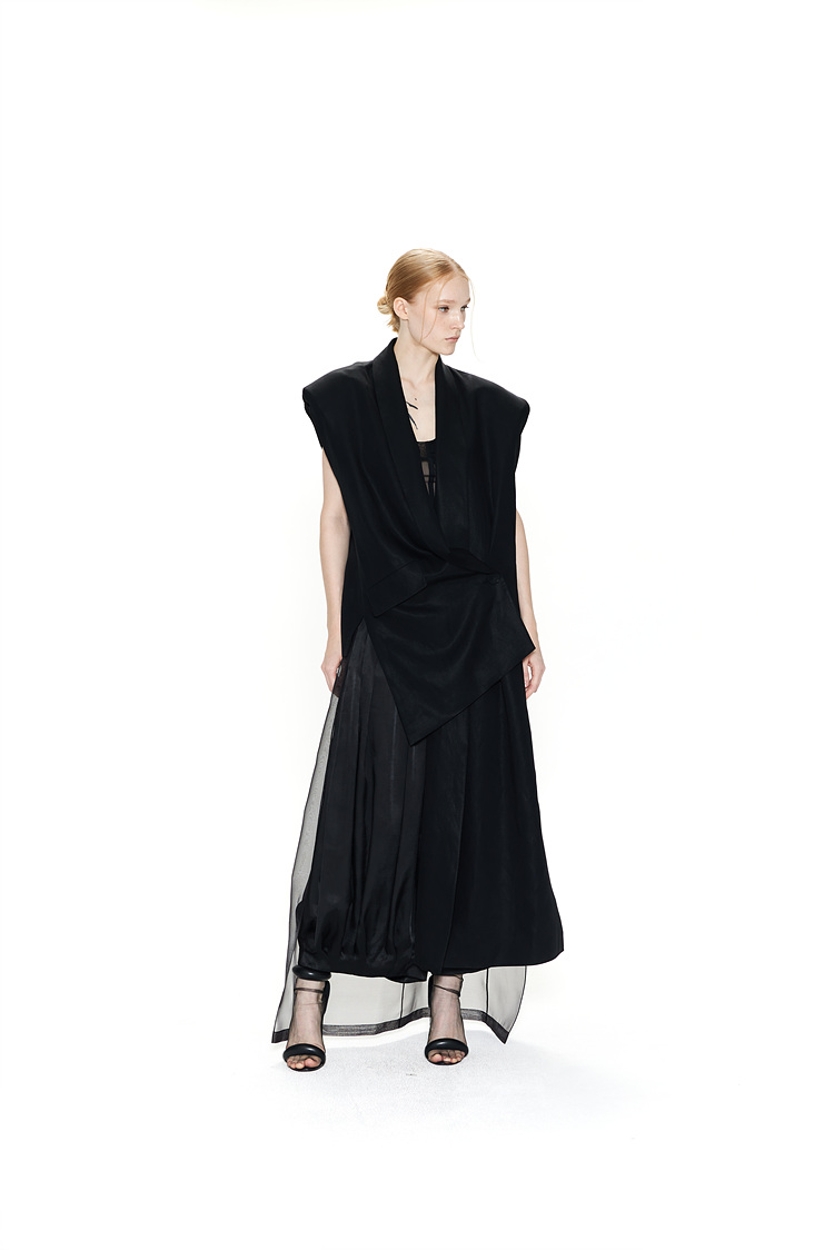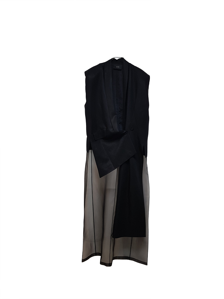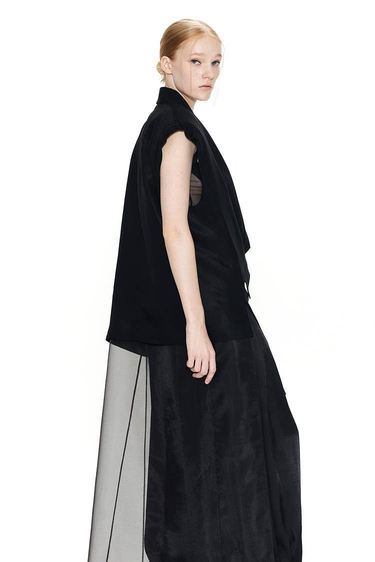 A DRAPE ORGANZA-MATCHED VEST-STYLE COAT